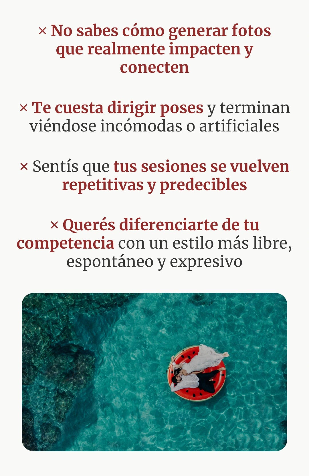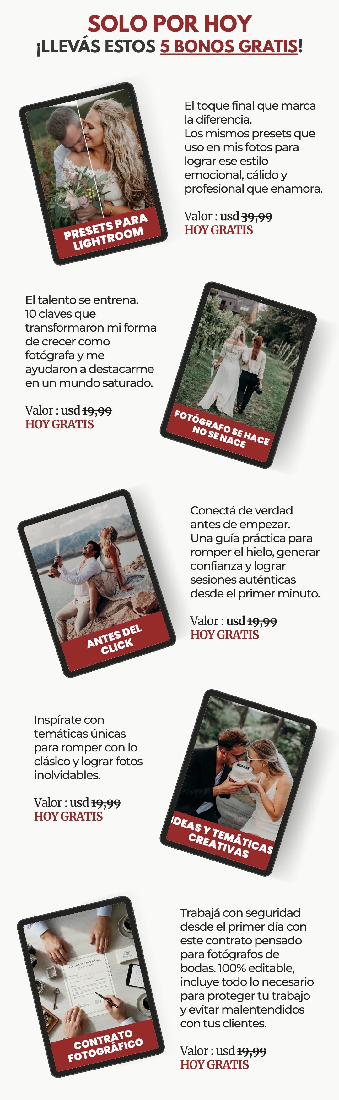 ¡Claro que no! Está pensada tanto para fotógrafos que recién empiezan como para quienes ya tienen experiencia y quieren profesionalizar su estilo documental.